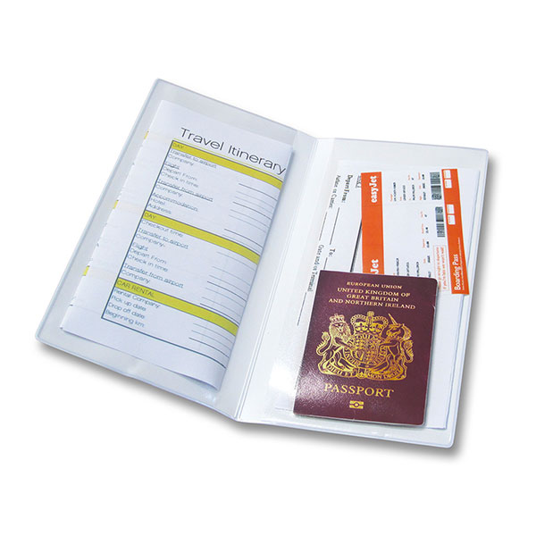 For essential travel documents with two clear pockets